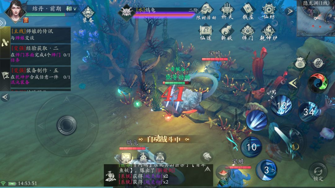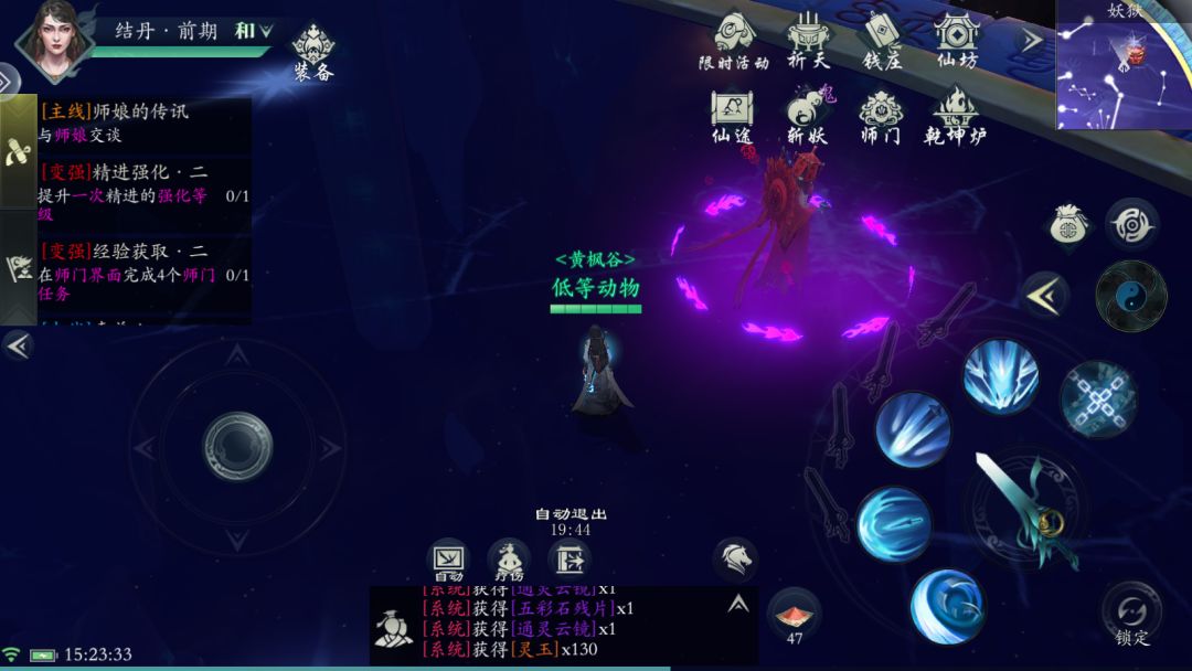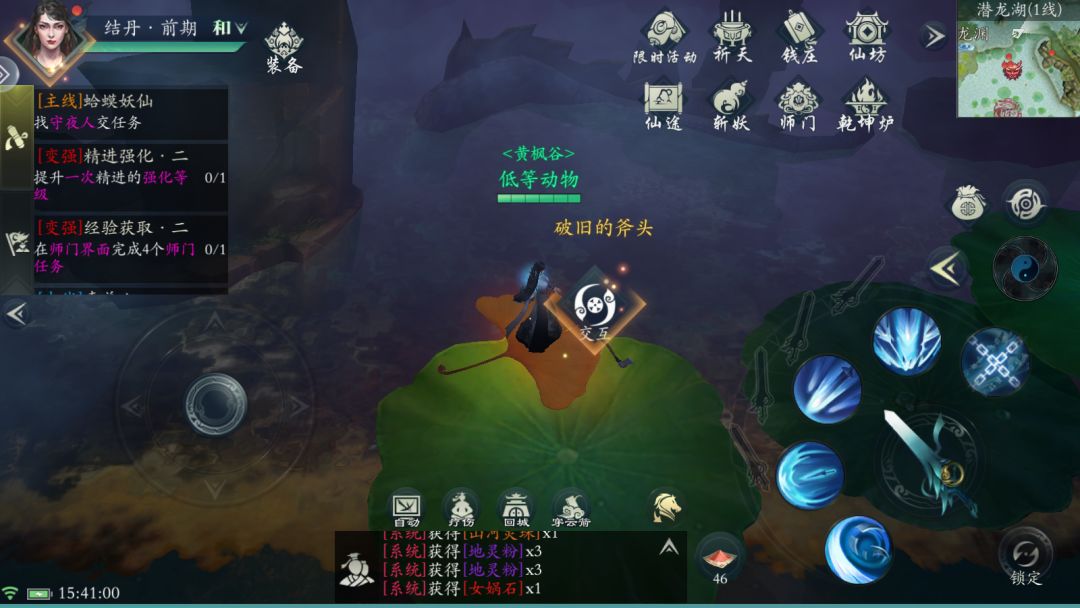 下面需要先把结丹地图的资源全部获取,鹤仙可以不着急打。