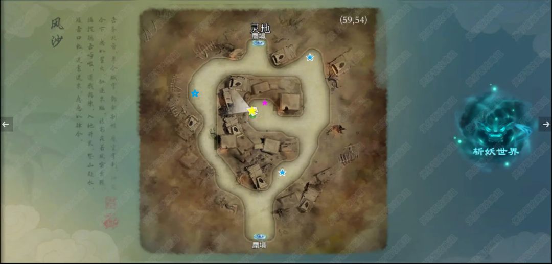 问山海游戏跟许多传奇类游戏一样,可以标记地点坐标,然后从另一个图直接飞到坐标位置,利用这一点我们可以容易去花果山摸一些很危险的灵气点。