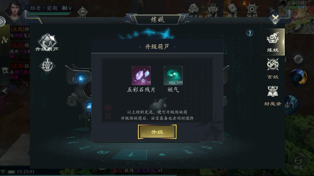 然后就是点开仙途页面完成任务,升级造化灵盘到2品。