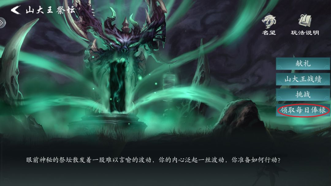 山大王祭坛处每天可以领取每个地图的虚灵遗迹门票*50