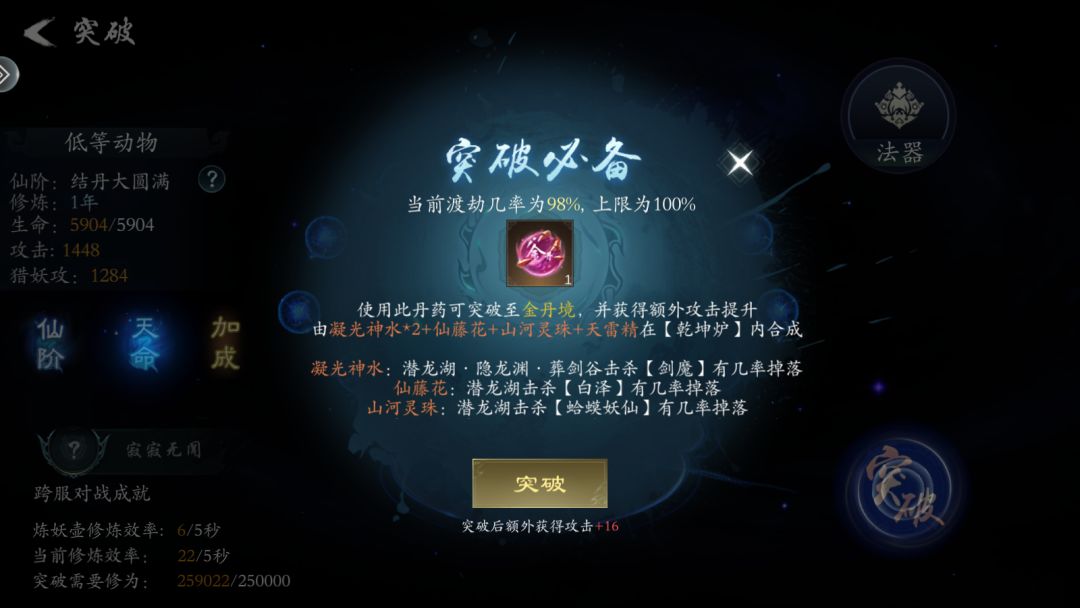 另外结丹期切记不要随意突破任何境界,如果不组队的情况下更应该不突破,后续有大用!