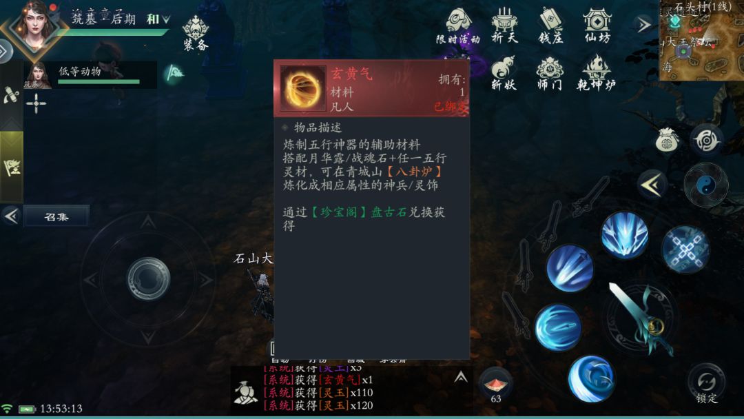 如果开局只抽到一个盘古石,此时就可以选择升级炼妖葫,解锁妖狱也可以快速获取一个盘古石,算是补救的一个办法了。五彩石残片在花果山云谷地图的boss会掉落,妖气击杀地图妖王可以少量获取,妖气不足的情况可以挂机刷一下妖王。