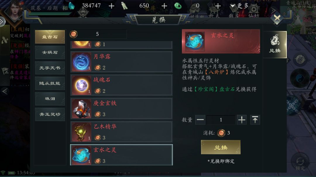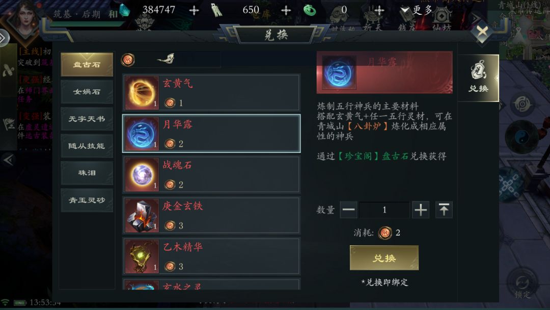 珍宝阁npc处兑换月华露*1(神兵)/战魂石(灵饰)