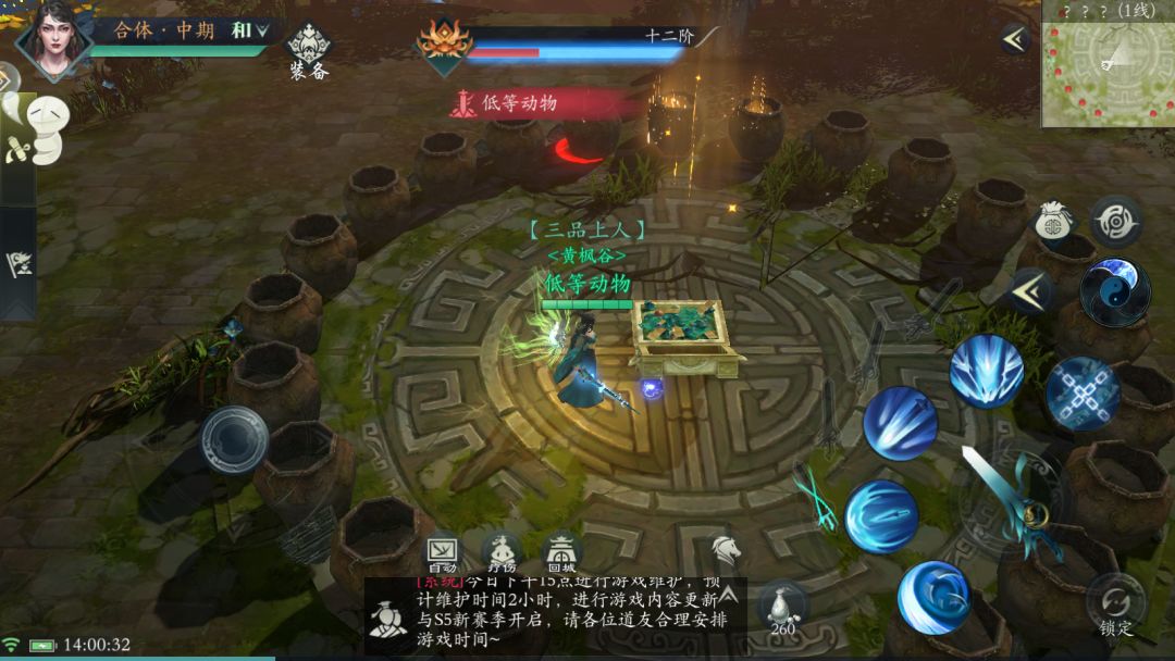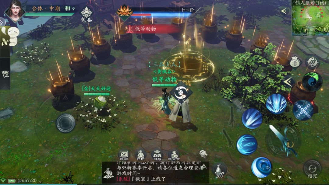 注:单挑的话需要运用到游戏机制,很多游戏都会有比较有好的机制,人物升级后会回复满状态,记得之前说过不要突破,这个时候就有用了,残血情况下直接突破回满血,继续跟boss单挑即可。但是只有一点不好,需要借助丹药突破的境界,突破后会硬控角色几秒,容易吃技能暴毙,因此推荐前中后期入境时候去单挑boss。这个机制后续在吃花果山一些危险灵气点的时候也可以使用。