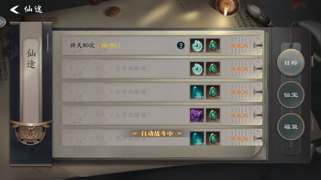 结丹期仙途任务以祈天抽奖和合成神话&混沌装备组成。