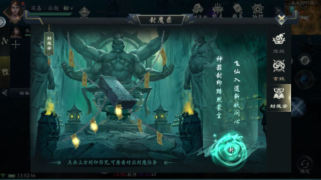 提交过任务会换地方,继续交互会获得幻仙石*1