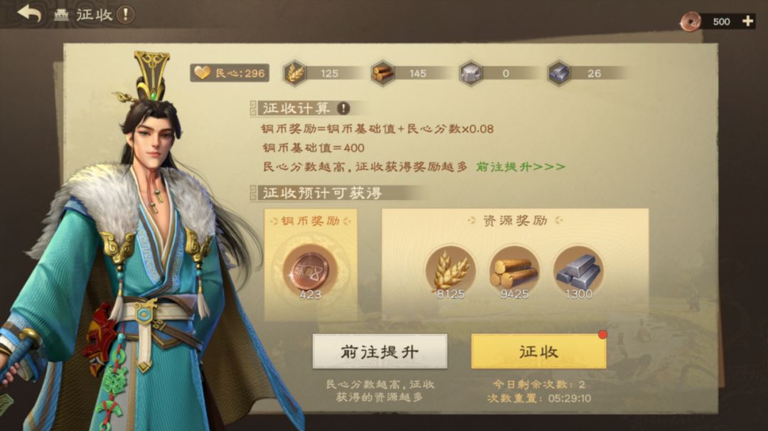 解锁民生系统后,需要摆放民生封地中的建筑,以提高征收奖励!