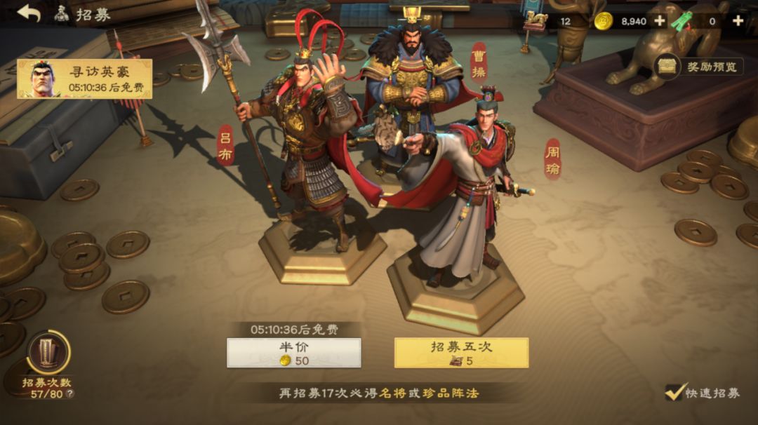 主公如若腰缠万贯,自然也可通过氪金来抽取更强的武将组合或者获取武将培养材料。