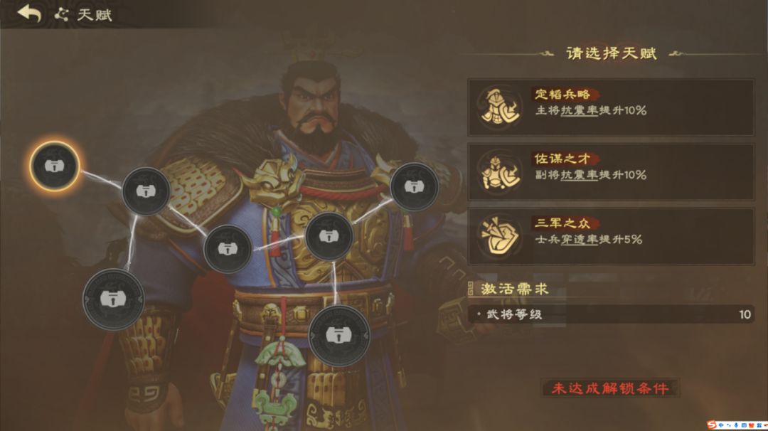 武将等级每升10级,便可提升天赋等级,从而提升战力。