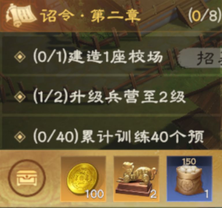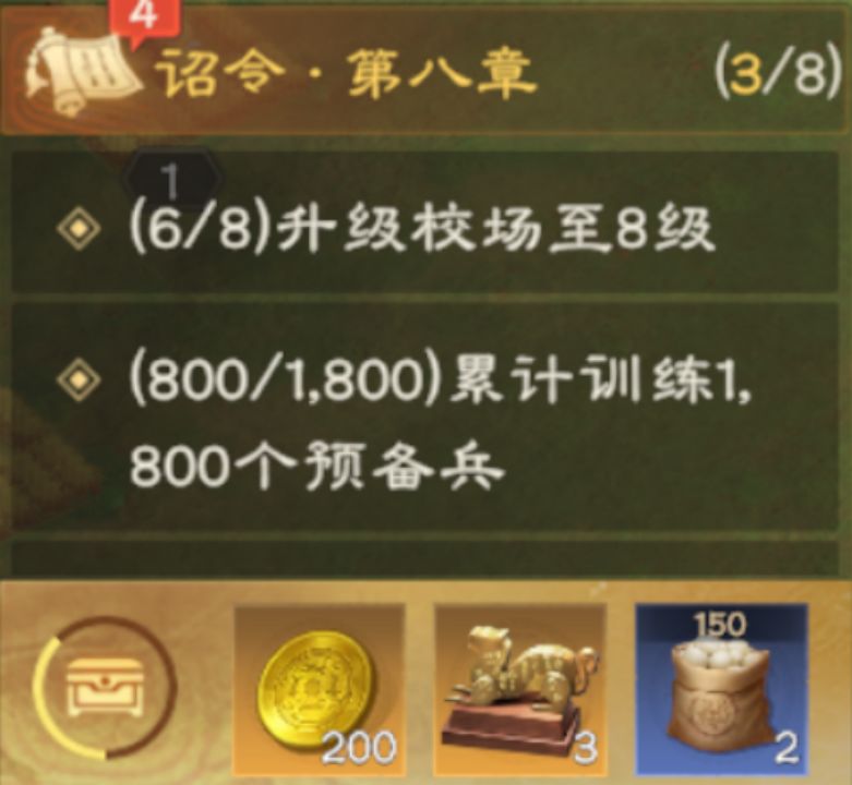 诏令任务已经为主公规划好了章节,作为前期开荒的重要主线,在遇到卡点前,主公只需要跟随诏令一直进行推进即可。