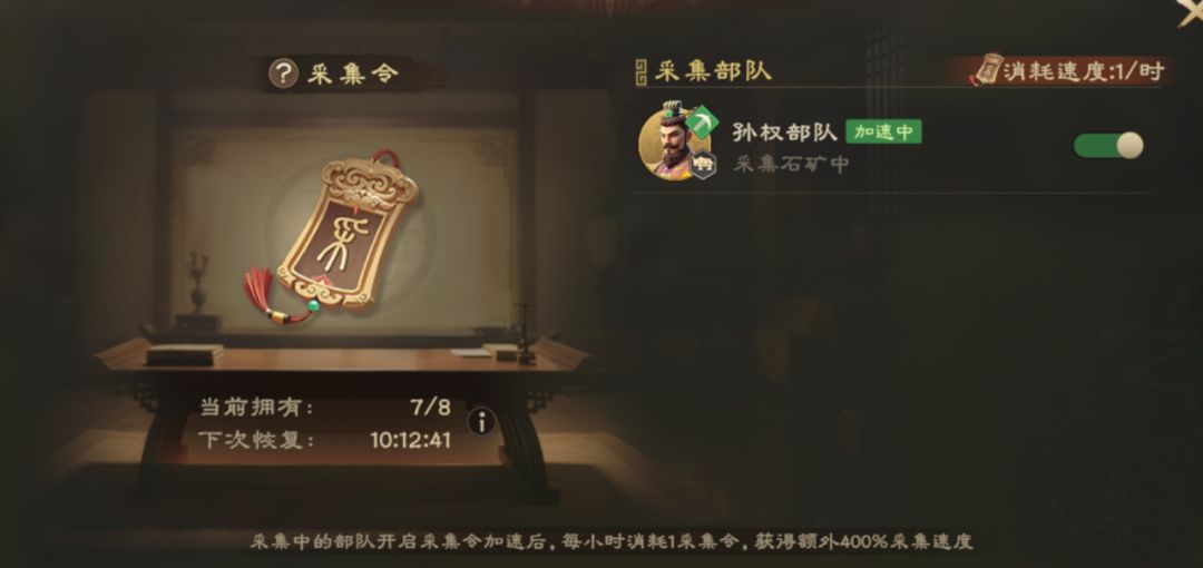 采集时,如果主公的主力兵种为木牛流马,则可获取更多采集资源。