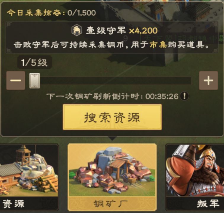 或者通过击败守军后,掠夺大地图上的铜矿厂获取。