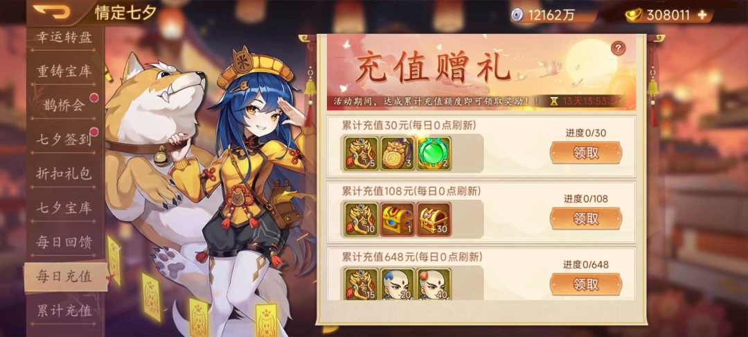 活动内容:活动期间,每日达成充值额度即可领取奖励!