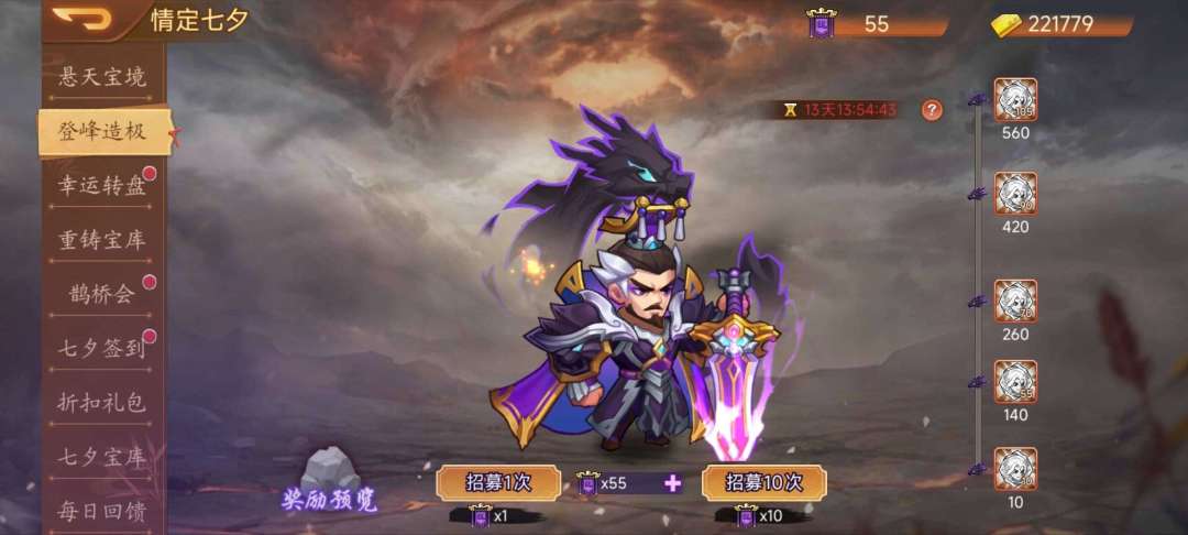注: 活动结束会【名望】清空,活动结束【招募令】不会清空,招募保底次数会延续到下期活动,不会重置。