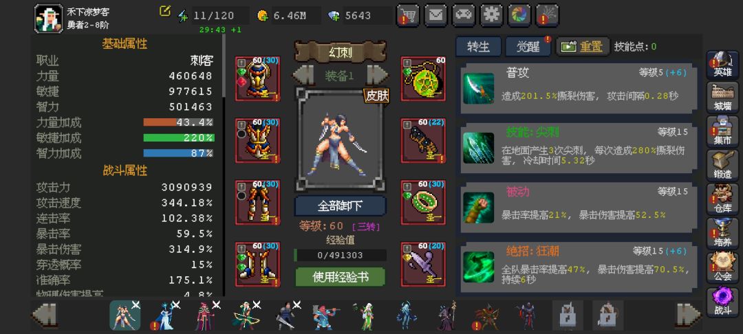 更新一下,辅助后期可以不要破法破甲光环了,只要确保配合城墙各有一个就好,幻刺有紫色觉醒之后就可以优先换成神化死神斩了,其他辅助可以神化技能狂暴。