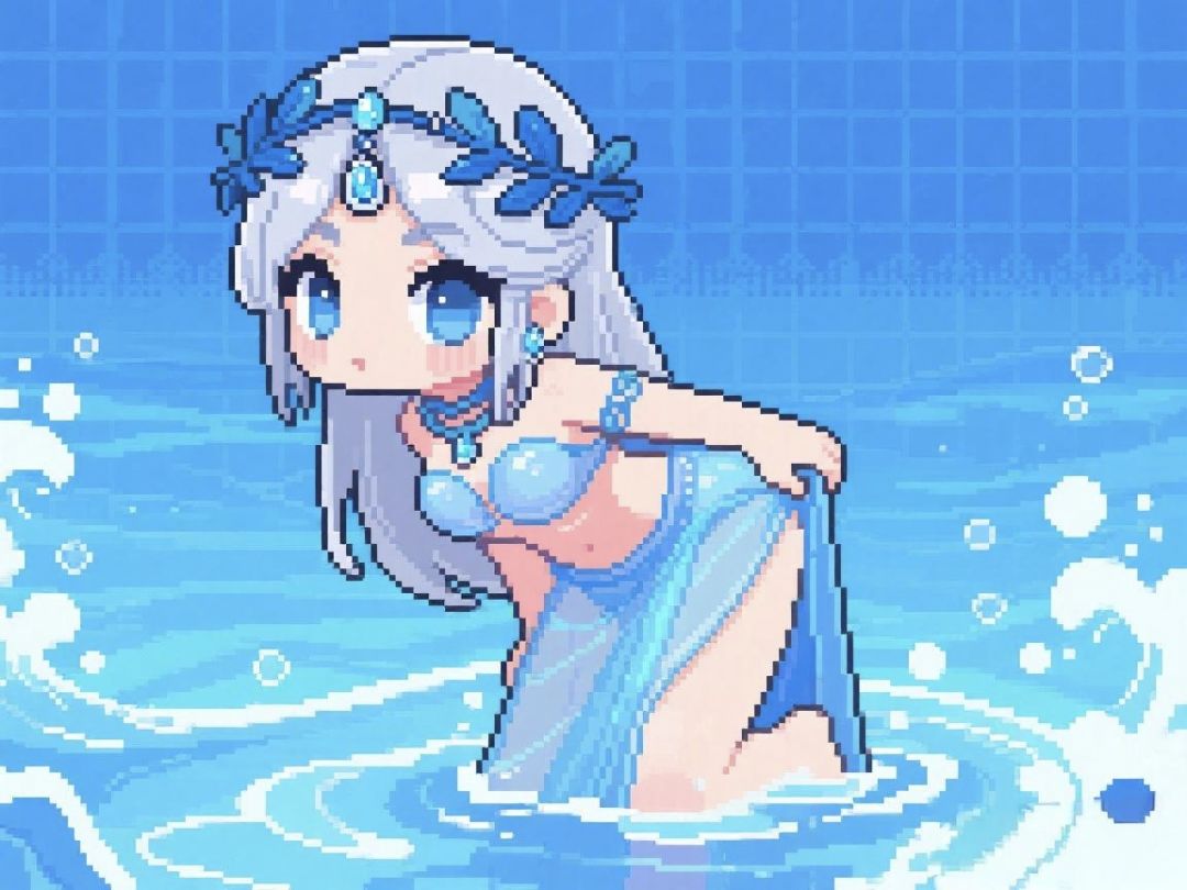 灵感创意来源:艾莉丝(Iris)是古希腊彩虹女神,象征希望与多彩人生。核心创意在于将“古希腊女性”这一主题,用更符合现代审美的方式进行重塑。没有选择传统庄重、神圣的神像风格,而是塑造了一位亲切、可爱、充满魅力的“少女神”形象,降低了距离感,增强了亲和力。蓝宝石项链及橄榄枝也是古希腊服饰文化的象征。主色调采用蓝色和白色,这是最直接能让人联想到海洋、清澈、凉爽与宁静的颜色组合。