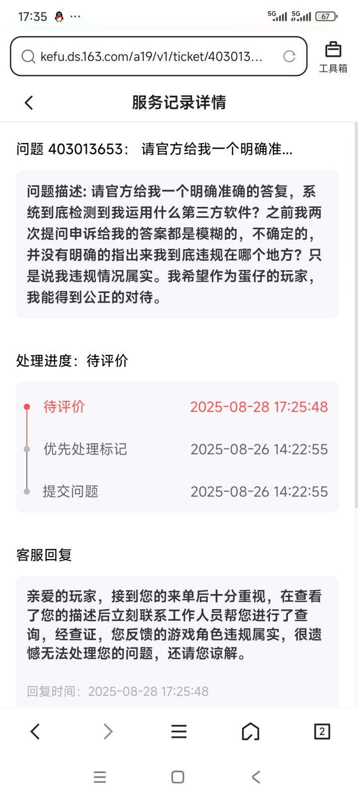 昨天第一个号申诉,莫名其妙给我回了一堆,说什么非常重视,但是也没说出来我具体用哪些软件?还是说这个违规什么东西,就说了违规情况属实。 回复的特别慢。还没有任何真凭实据。
