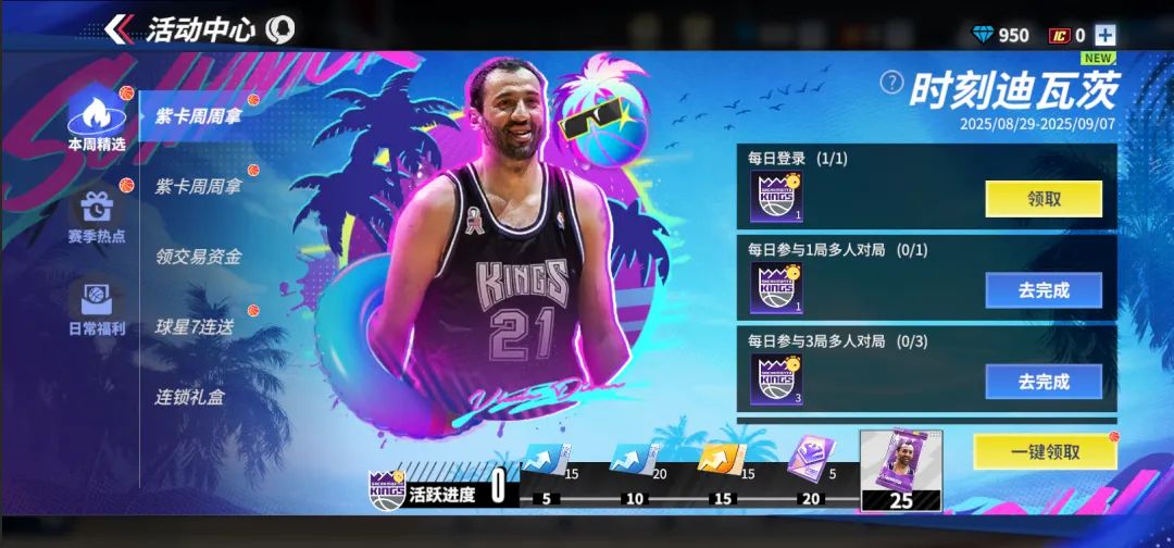 兄弟们!吉哥为大家带来了本周的球星&福利活动介绍!本周紫卡时刻迪瓦茨免费送!百分组合卡池限时返场!