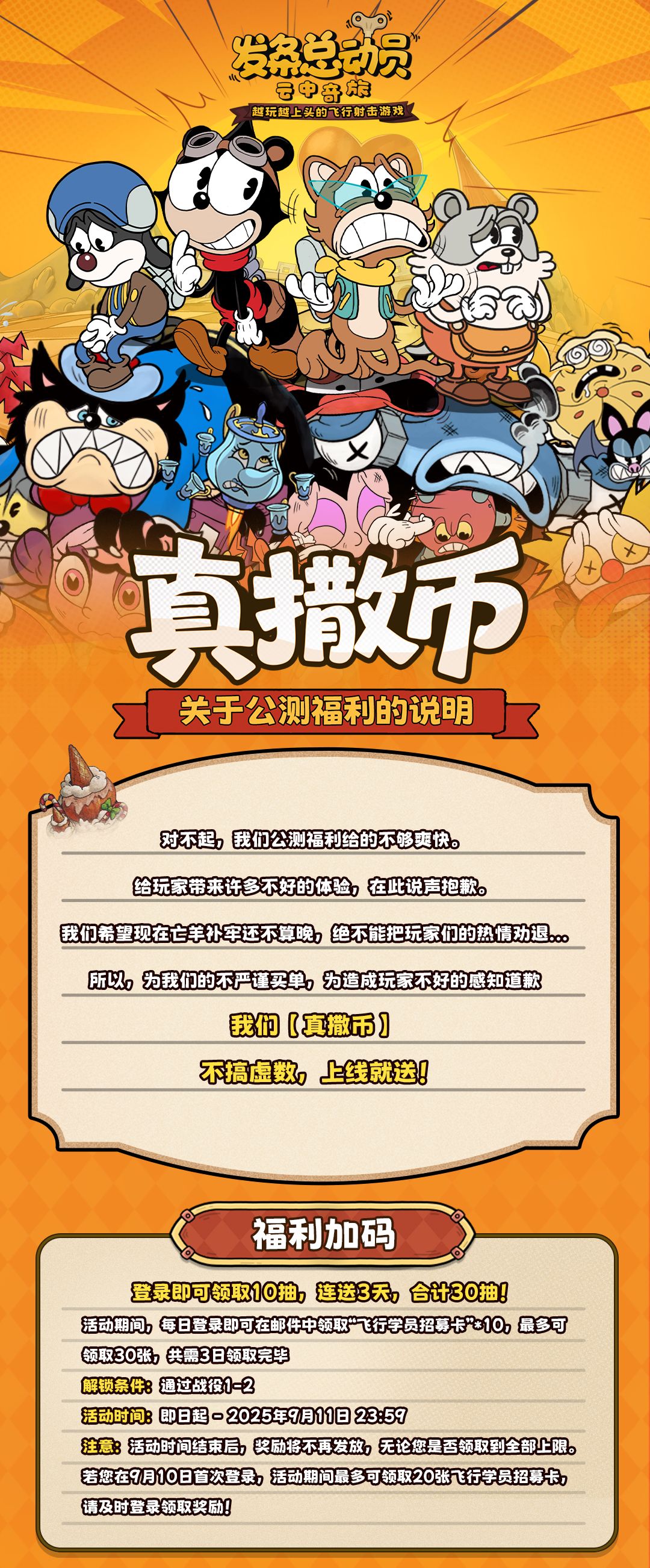 对不起,我们公测福利给的不够爽快。给玩家带来许多不好的体验,在此说声抱歉。