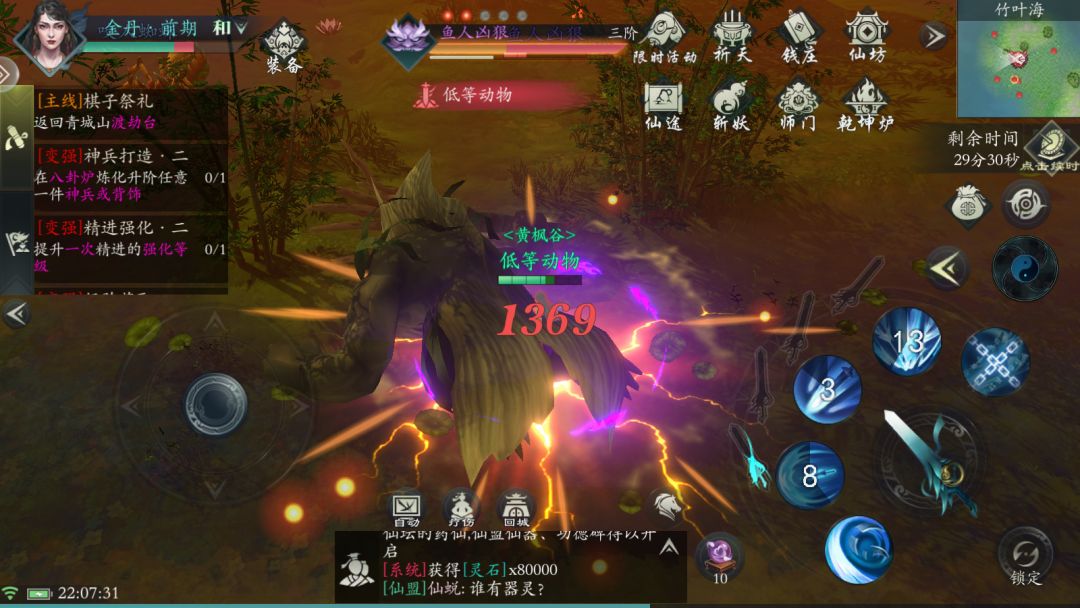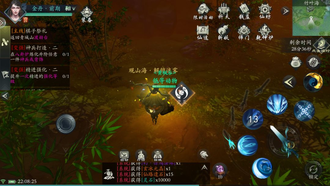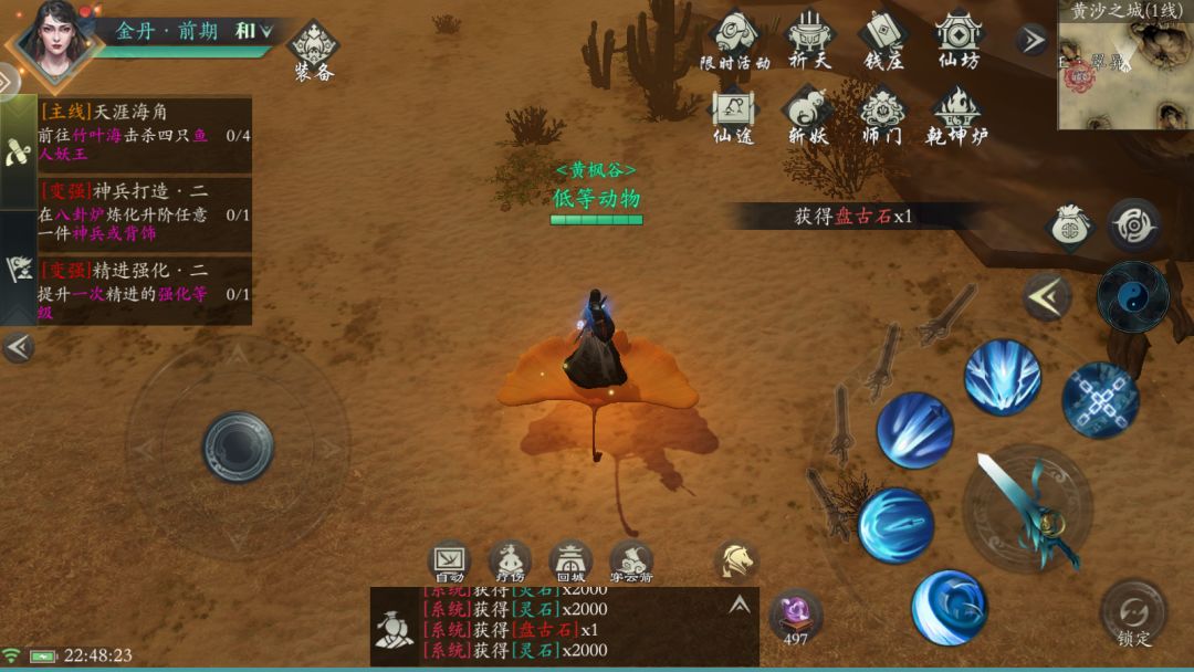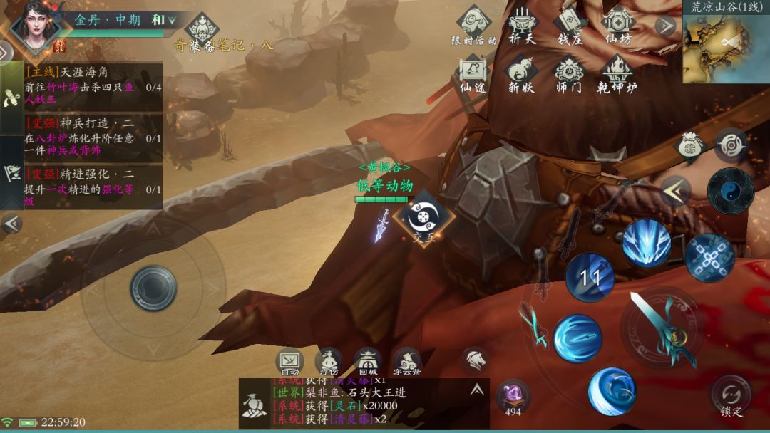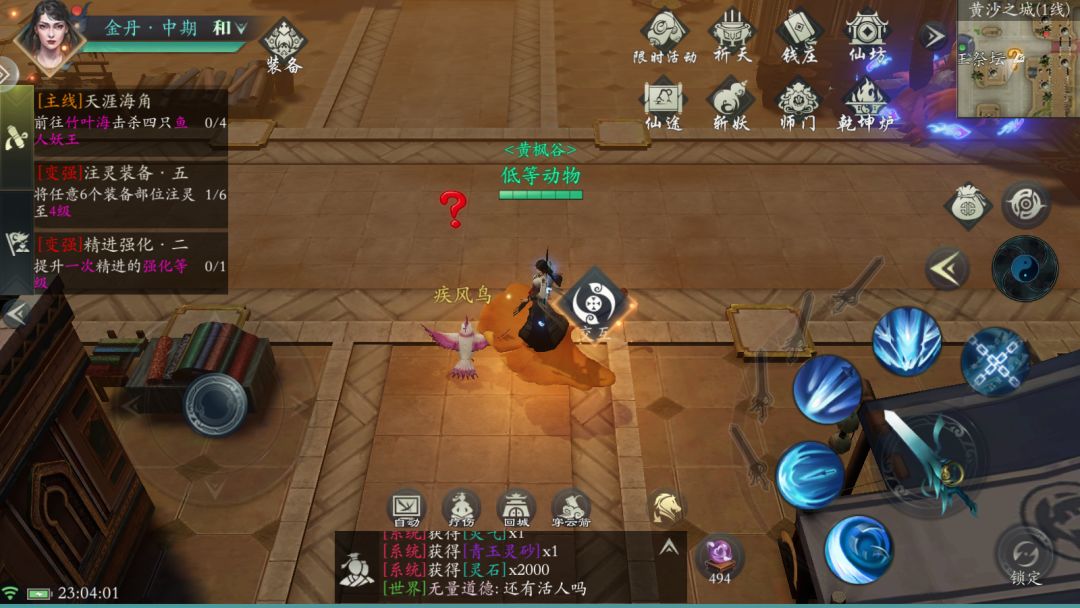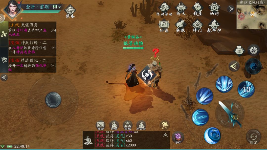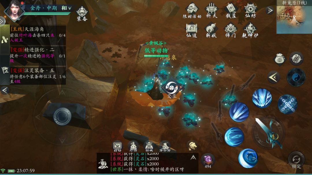 金丹期会自动接取强化任务,需将身上六件装备都强化到+4,即可获得几万修为,中品黄玉可以通过天涯海角刷怪获取(推荐)或者灵玉商店购买(不推荐,除非没时间)