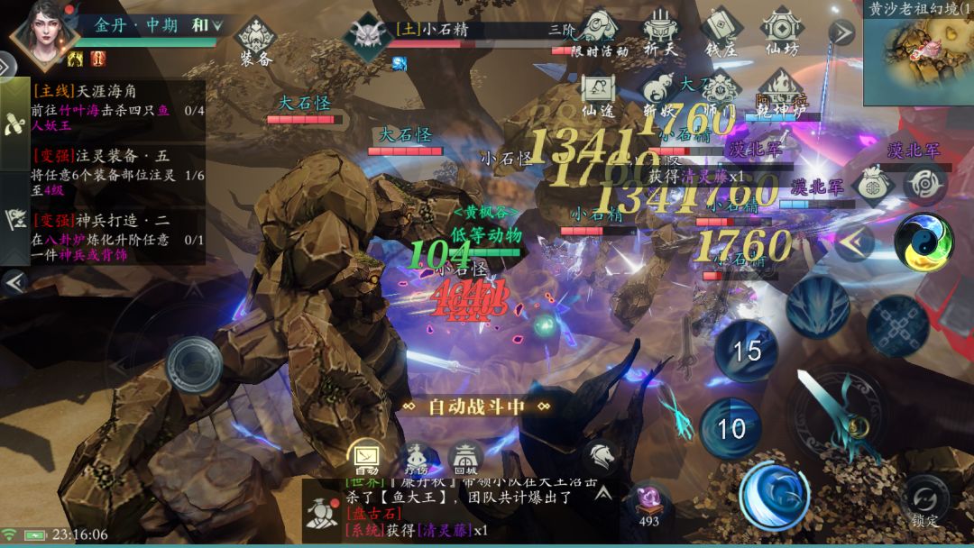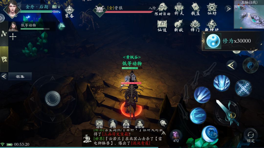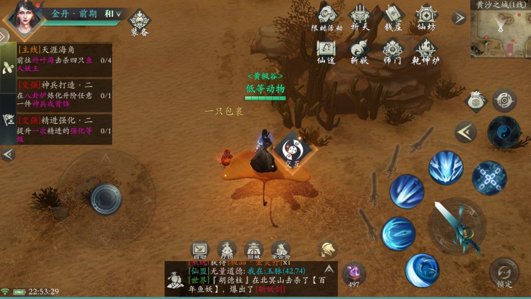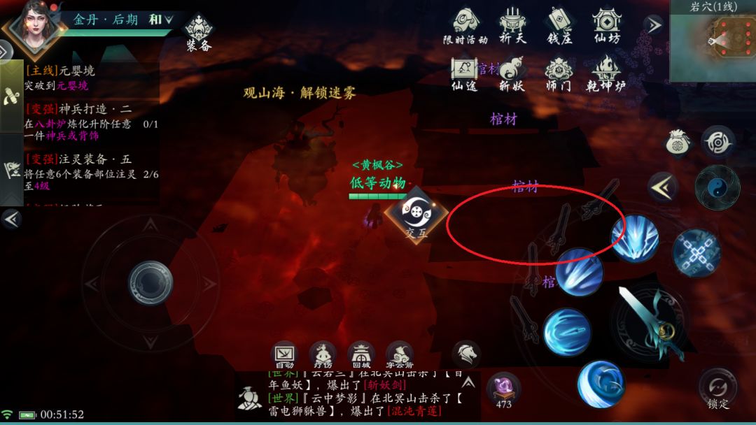 地图中得妖王会乱跑,道友们需要在其出生点位附近寻找一番,另外地图上的小怪和精英怪财主鱼击杀会有5%概率生成三阶鱼王及1%概率生成四阶大象,因此固定的妖王刷完后可以在地图清理小怪杂兵和精英怪,有概率直接原地召唤我们任务需要打的妖王,玄鹤可以掉落盘古石、女娲石及灵玉,是最重要的资源获取点之一,因此前期需要尽快提升实力尽早可以拿到资源点!
