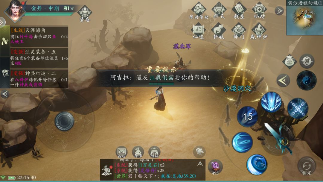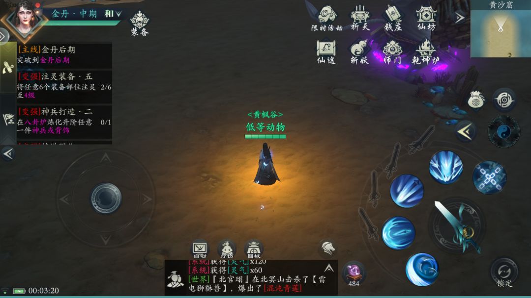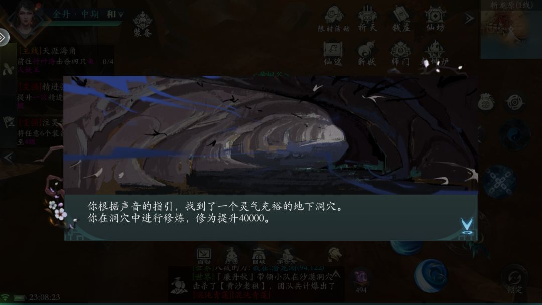 沙漠洞穴首杀一处,灵气点*1,掉落混沌青莲*1