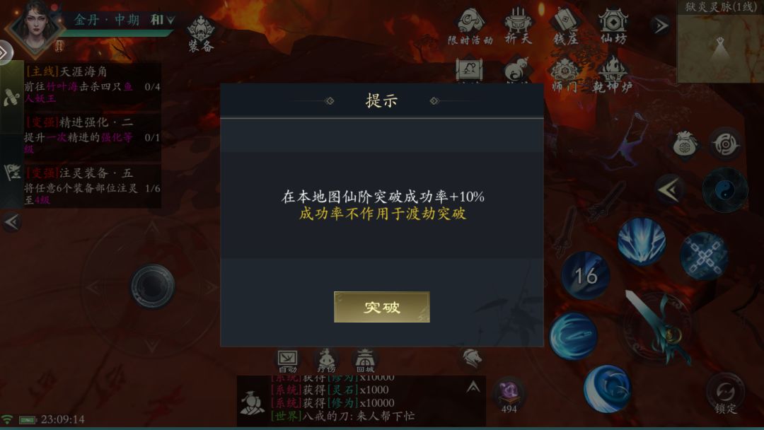 金丹地图斩龙原内的福地可以加10%突破概率,稳妥起见可以去福地进行突破。