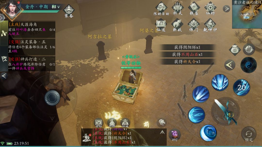 黄沙老祖击杀后解锁环境地图,宝箱可获得重要材料:不周山石*1
