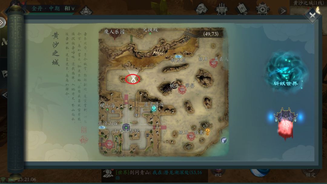 黄沙门口魔人乐园每日四次,可得2w灵石