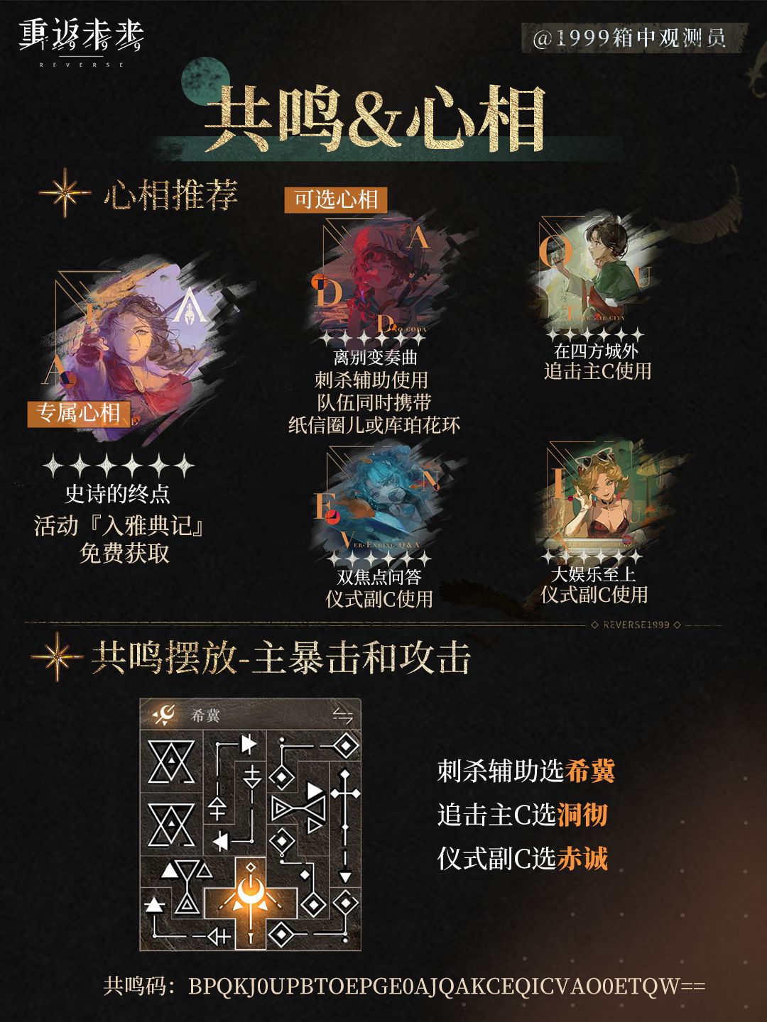 主暴击和攻击,刺杀辅助选希冀、追击主C选洞彻、仪式副C选赤诚
