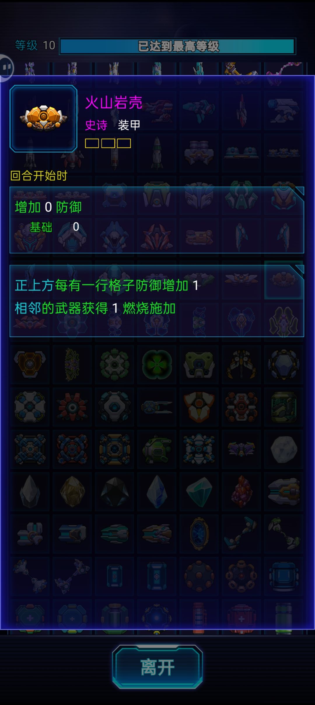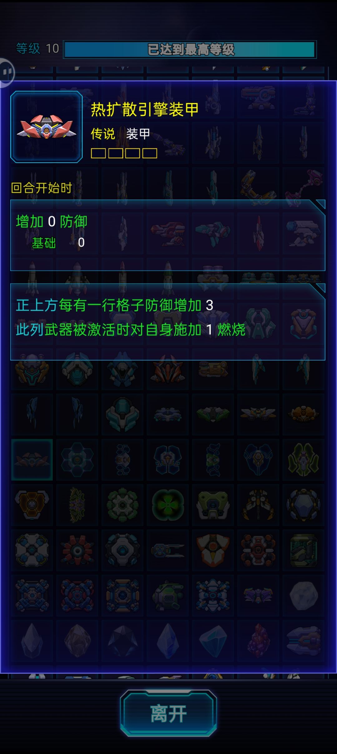 开局先sl一个反物质巨炮,然后先堆防御,宝石,打精英怪掉遗物有限选百分比输出,优先扭曲神经突触,时空罗盘,神秘超导体,巨人水晶(宝石叠加输出),留一瓶湮灭装料;装甲优先选热扩散引擎装甲,左右铉传导装甲。装备升级优先升级花300金币加能量,后期一炮至少120的输出(搞个反向器,一回合300多输出),每回合100多的护甲,有肉有输出