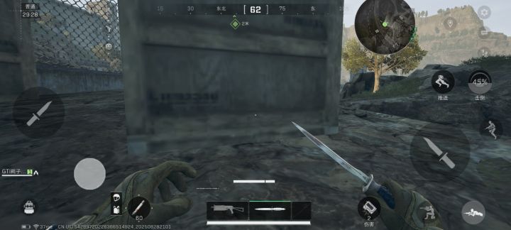 图四,同样位于西区公路口,从管道到撤离点的这颗大树上。选用干员威龙,来到第三个铁丝网处,有一处明显高于地面的地基,站在上面,准心对准大树中间,一个喷气,就可以了。选用枪械——金丹单发狙或者svd ,因为svd打同级听力头仅需一枪,这个点位唯一缺点就是容易补不了人,建议双排,补伤害。