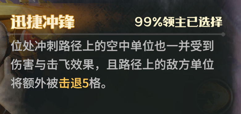 向敌方单位最密集的地方冲刺8格,击飞路径上的敌人,造成伤害且自身获得护盾。