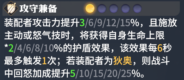 狄奥的专属龙石是攻守兼备,可以提升攻击力,并且每次释放技能后,都能获得护盾。如果是狄奥来使用,则战斗回怒加成更快。