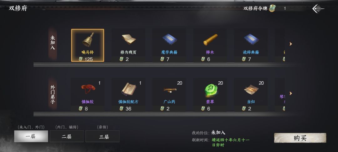 很多新手还不知道这个东西,甚至查攻略可能会出现要你加入双修府,其实不用,唤马铃不需要加入双修府,首先我们来到(881,932)找苓儿,点开交谈,打开青楼运营,打开收益,右边有一个使用铜钱兑换令牌,一共需要12.5万,可以先去赌博赌到12.5万,然后还是找苓儿就可以兑换了