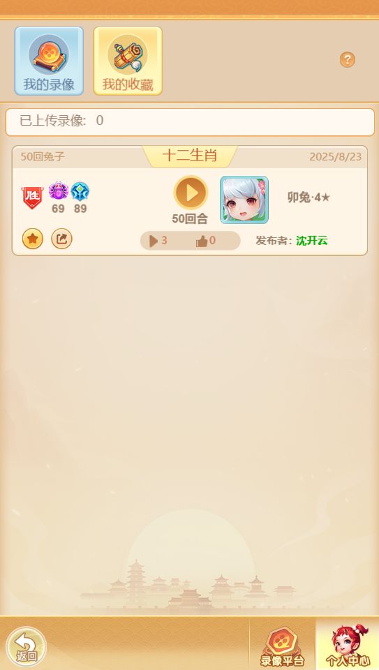4.录像上传后,所有玩家可见,可对你的录像进行观看、点赞、收藏等操作