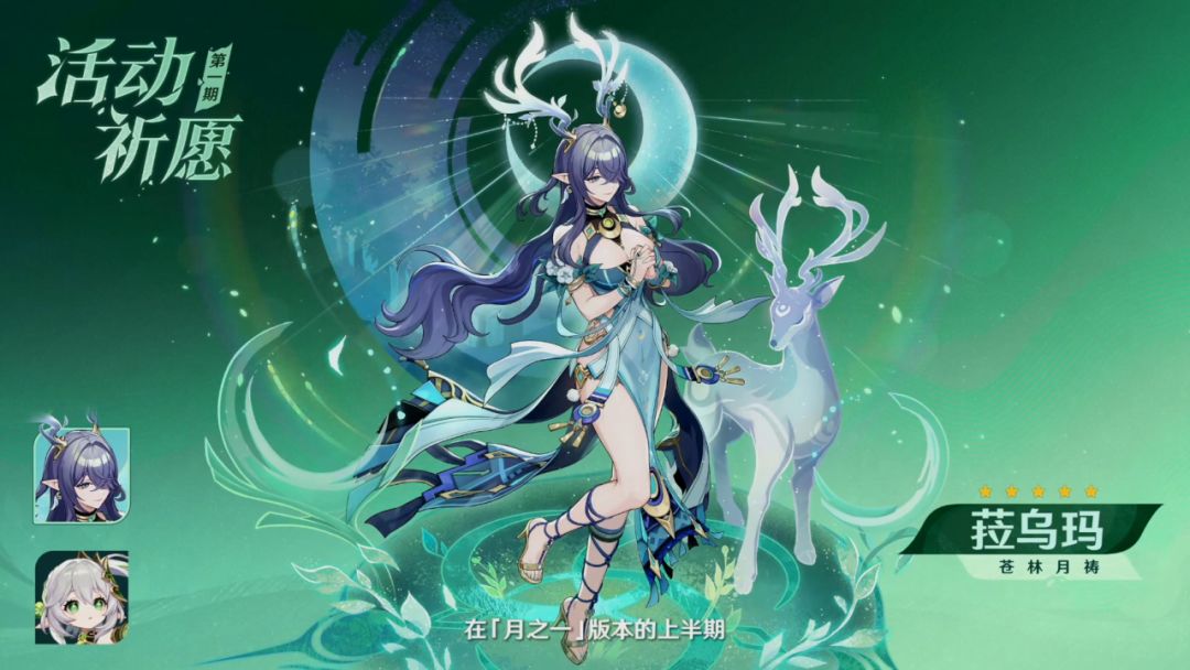 月之一版本有上下两个卡池,有集录祈愿卡池。上半:菈乌玛+纳西妲