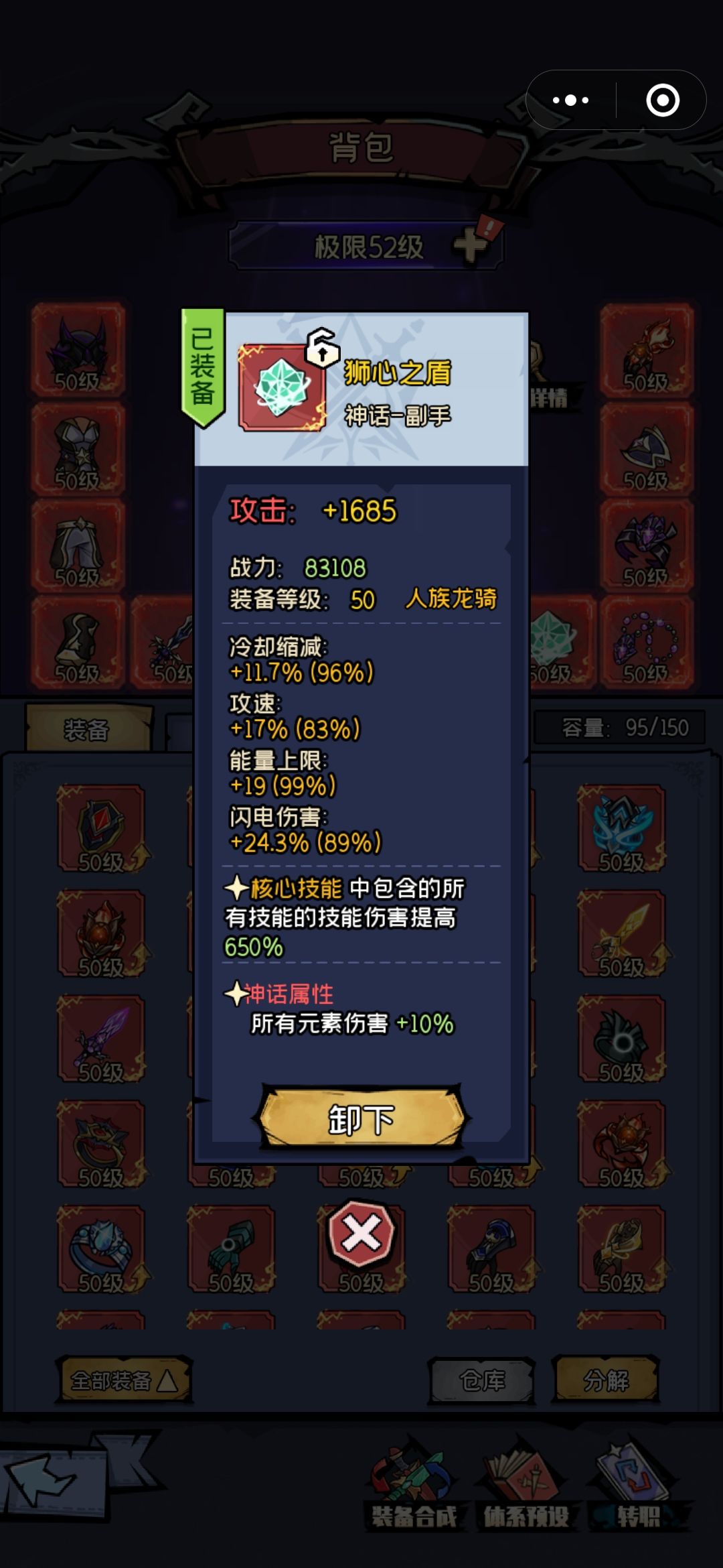 神话属性选择:武器副手选择暴击,防具除了护手和护肩选择全元素防御,剩下的都选远程,戒指远程,项链攻速,