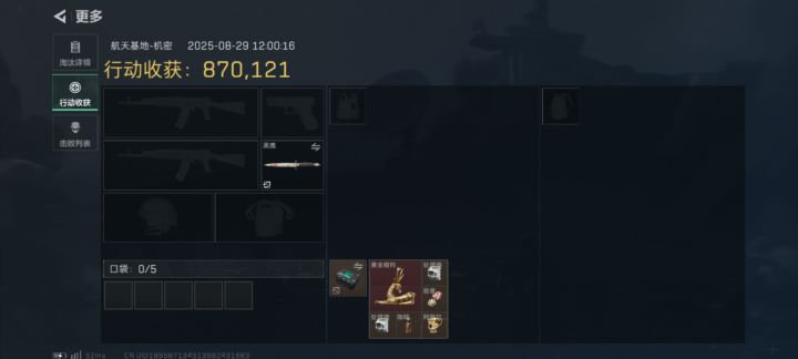 最后盾哥回没回本我不知道,我卡战备进的,回本了。本来能180万撤离的,血赚180万(总裁打死的那人有5级头,还开了一堆紫,包括6格的紫刀),现在除去战备和子弹钱,我只赚了56万。