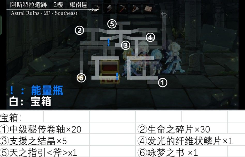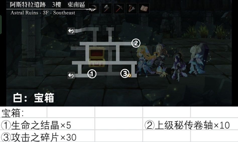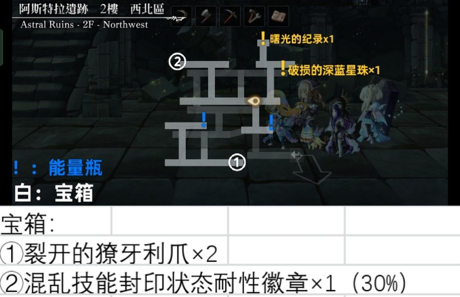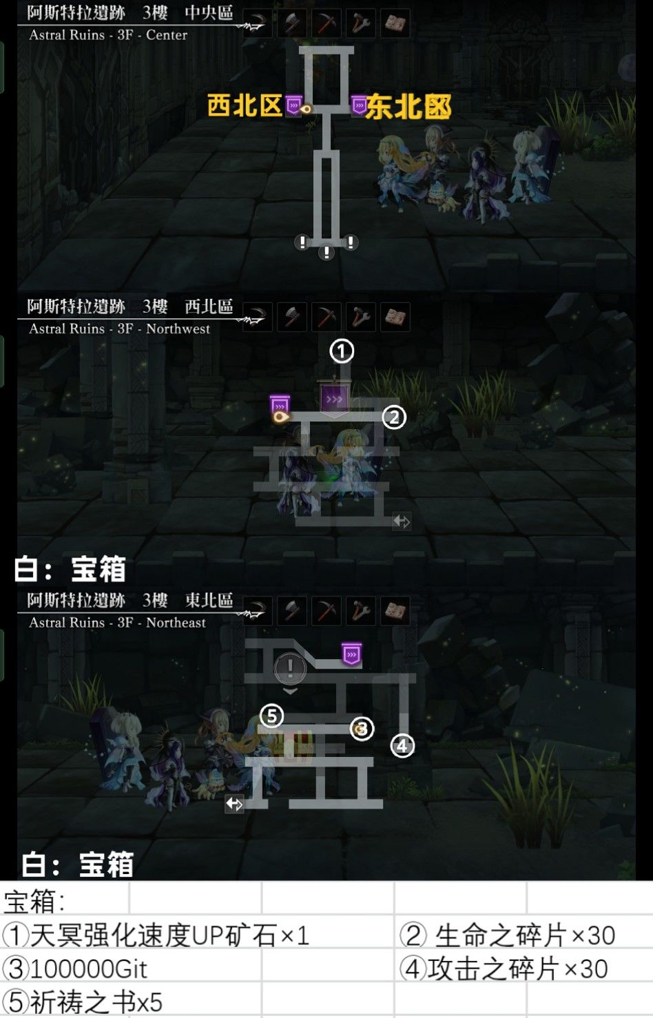 2)阿斯特拉遗迹 3楼 中央区→西北区→东北区→回到中央区触发剧情回去宿瓦里耶