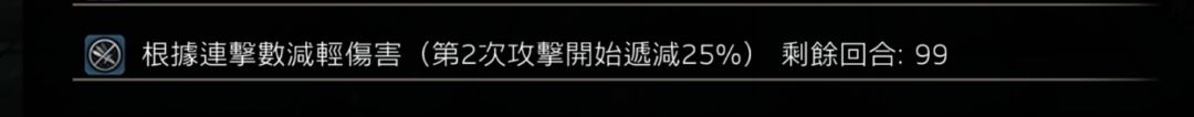三命的给予自身根据连击数减轻伤害(第2次攻击开始递减25%):