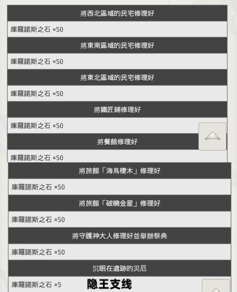 来到了最肝疼的部分,虽然结束后是能直接接该支线,但是没有完成以下8个重建支线,不然会直接卡灾厄支线!