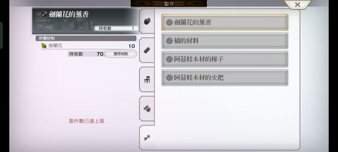 当开图道具做到能够开完全图,系统会提示制作数已抵达上限(火把x7,梯子x2,桥x2)
