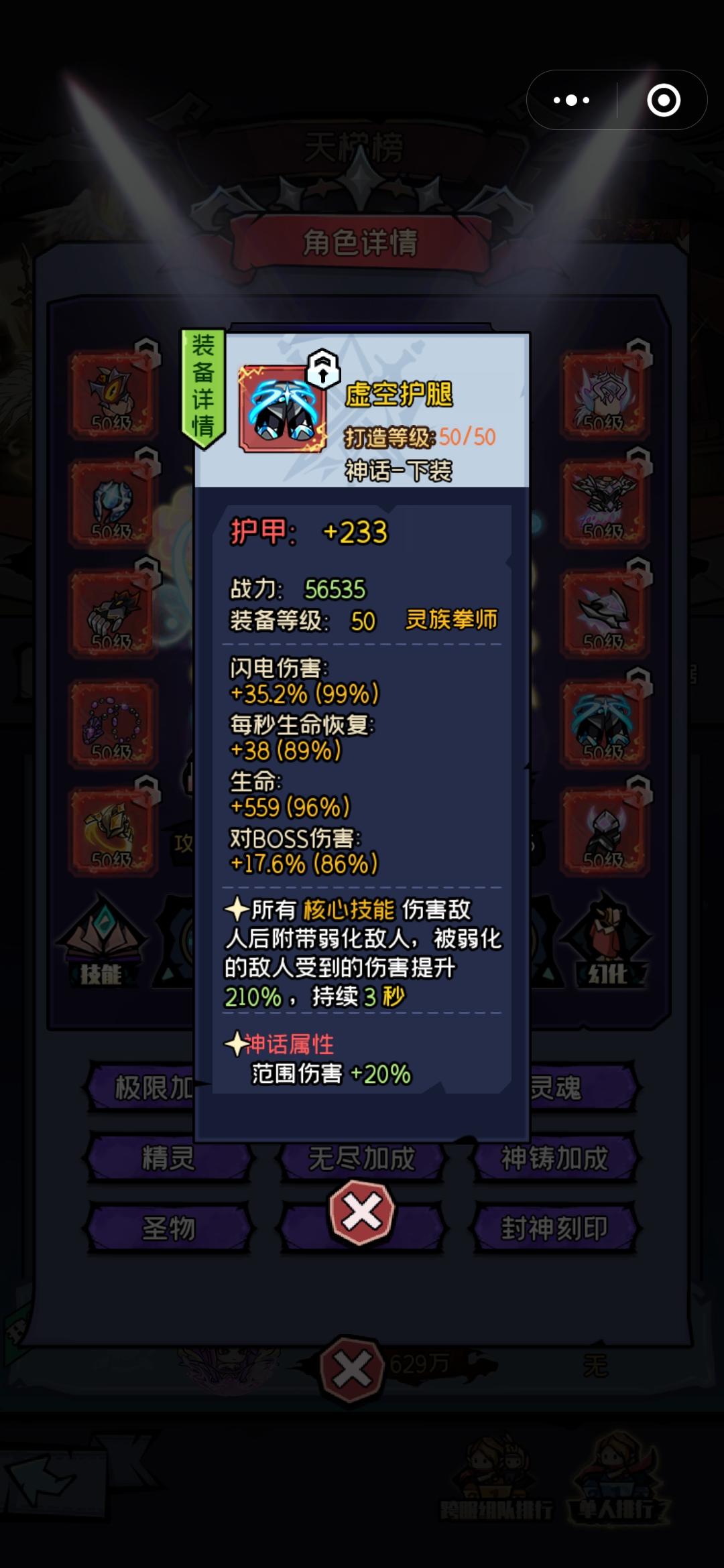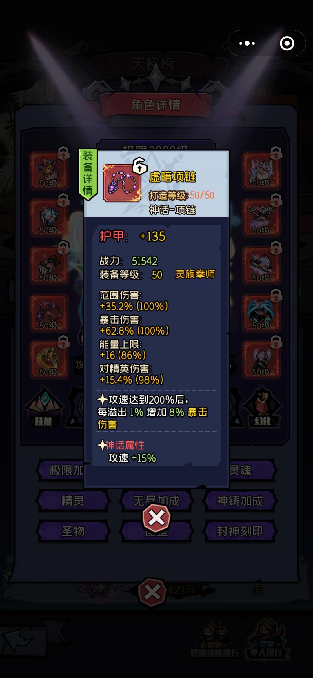 灵族拳师装备选择:装备按照下面的搭配,神话属性是范围伤害,项链选择攻速,护手和护肩选择全元素伤害减免,装备洗练洗攻速和boss伤害,范围装备加上封神卡片和英魂足够用了