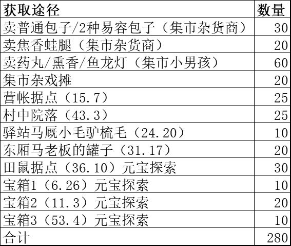 游戏中一共可以获取280个,一共消耗也是280个,不多不少,不会出现不够的情况。建议优先在杂货商购买任务道具长明火种(需要100个)后再买其他东西。