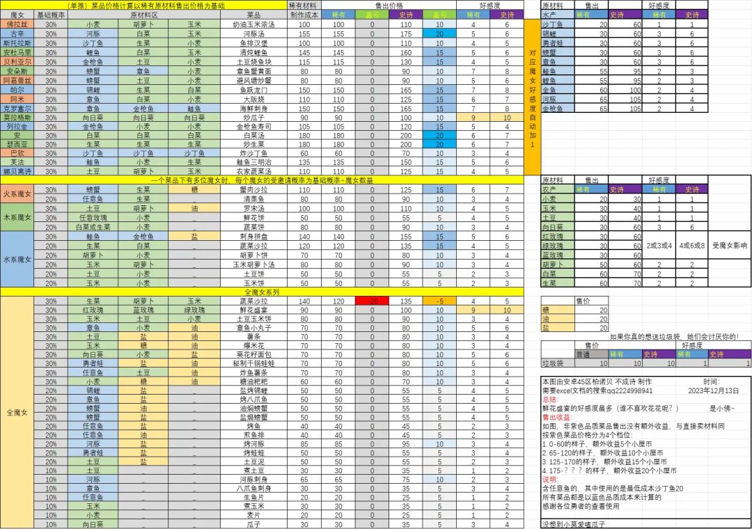 3.魔女除了莫格拉斯和安朵斯,都不推荐送对应魔女喜欢的菜,不然亏的裤衩子都不剩