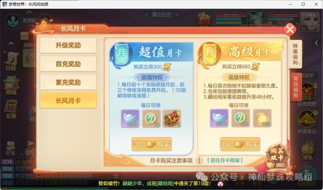 小月卡福利:每日领取金券,优先用于购买高级护符或自选器灵箱子。