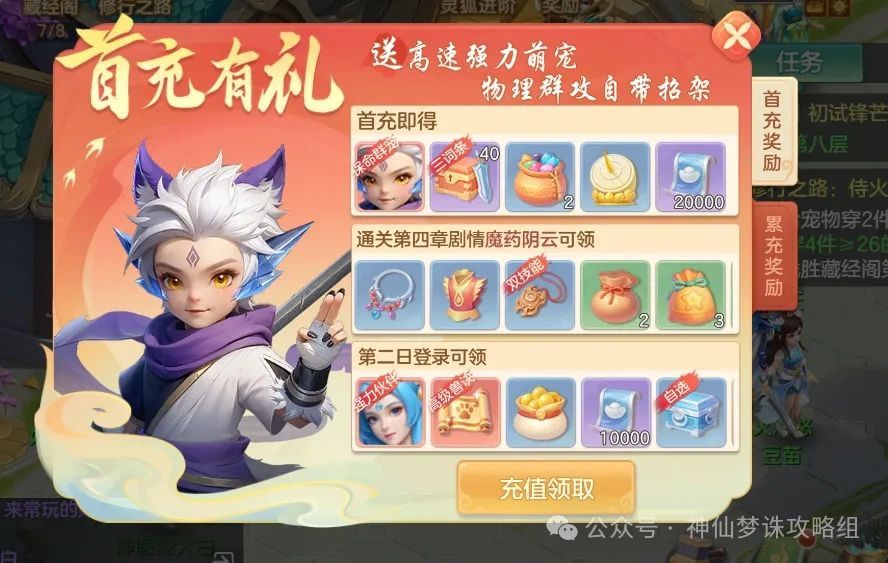 前期必练 3 只宠物:猴子、小狼(首充赠送)、小灵狐。