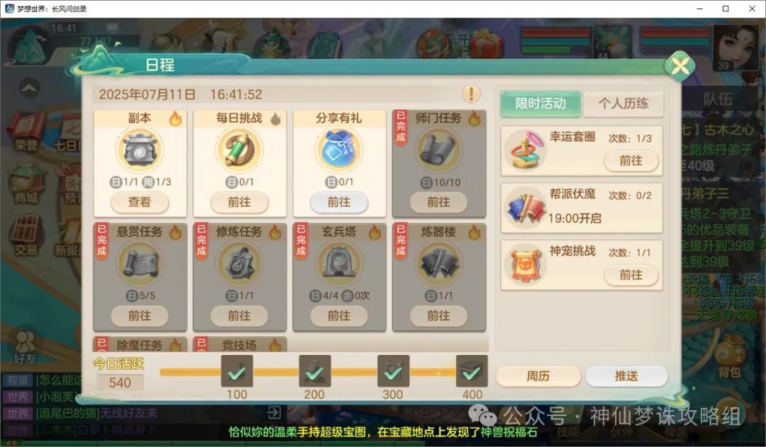 优先推进主线剧情至第 4 章,完成后开启 “日常一条”(师门任务等),全程耗时约 20 分钟。