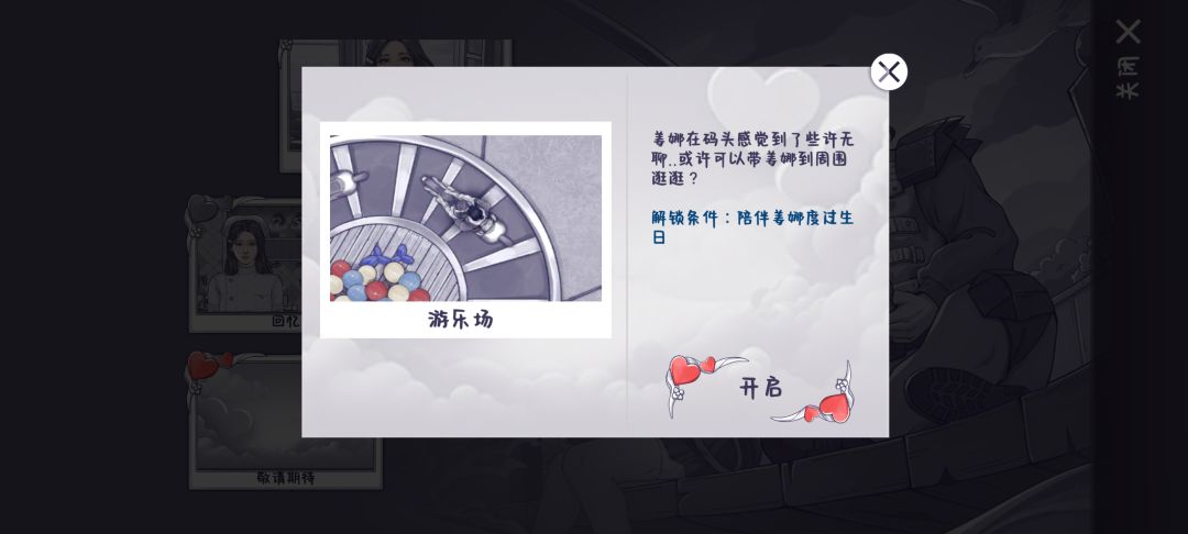 刚进入地图时地图上的问号很多,一一触发剧情就能进入,有一些是需要别的条件,比如剧院、旋转木马和娃娃机,娃娃机需要游戏币,而剧院是需要钥匙的,而这时候咱们就要绕弯弯去管理局也就是分布图上所写剧院钥匙的地方